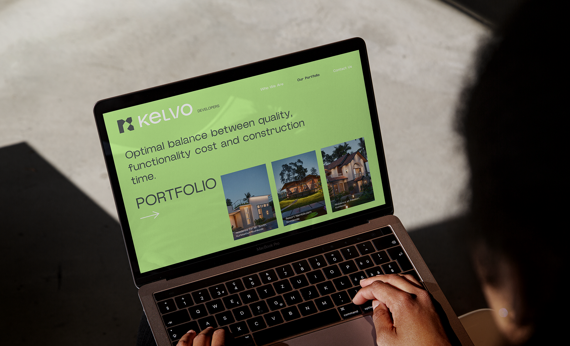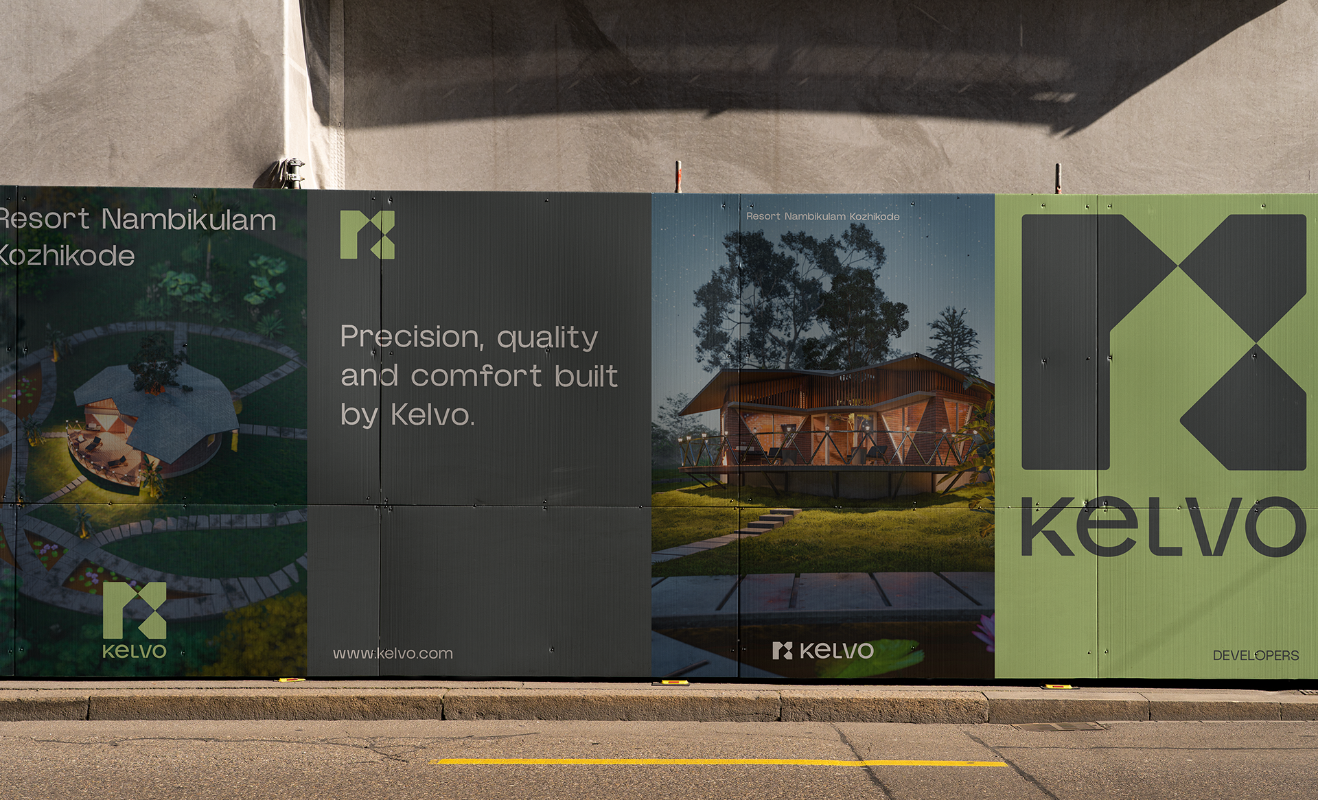 Kelvo Developers is a construction and development company based in Kozhikode, India, specializing in residential, commercial, interior design, apartment, and villa projects. Although already operating in the market, the brand lacked a defined visual identity—and this was the starting point for the project.